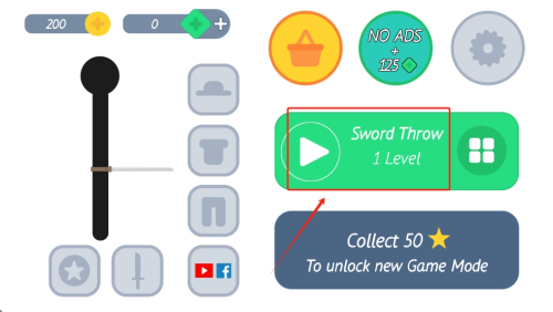 2、选择游戏模式:点击“Sword Throw”按钮选择游戏模式并开始游戏。