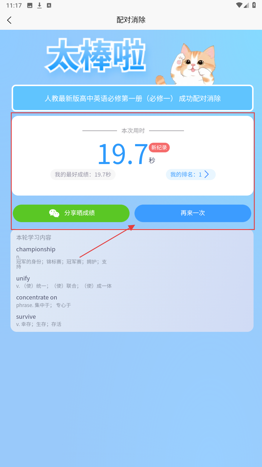4、全部进行配对后即可完成,可以点击【再来一次】继续挑战。