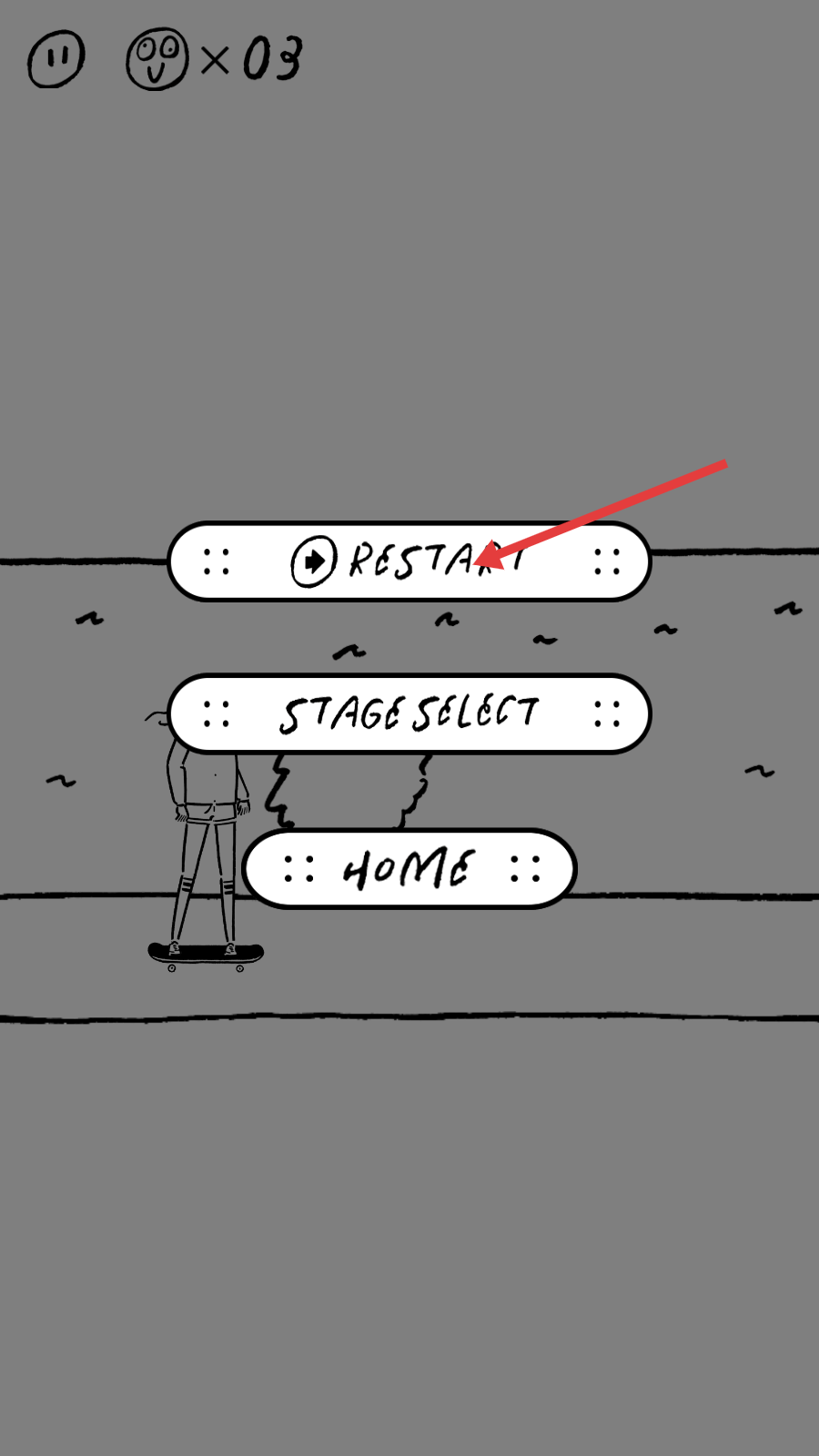 4、若挑战失败,点击【RESTART】按钮重新开启关卡,借助经验优化操作再次尝试通关挑战。