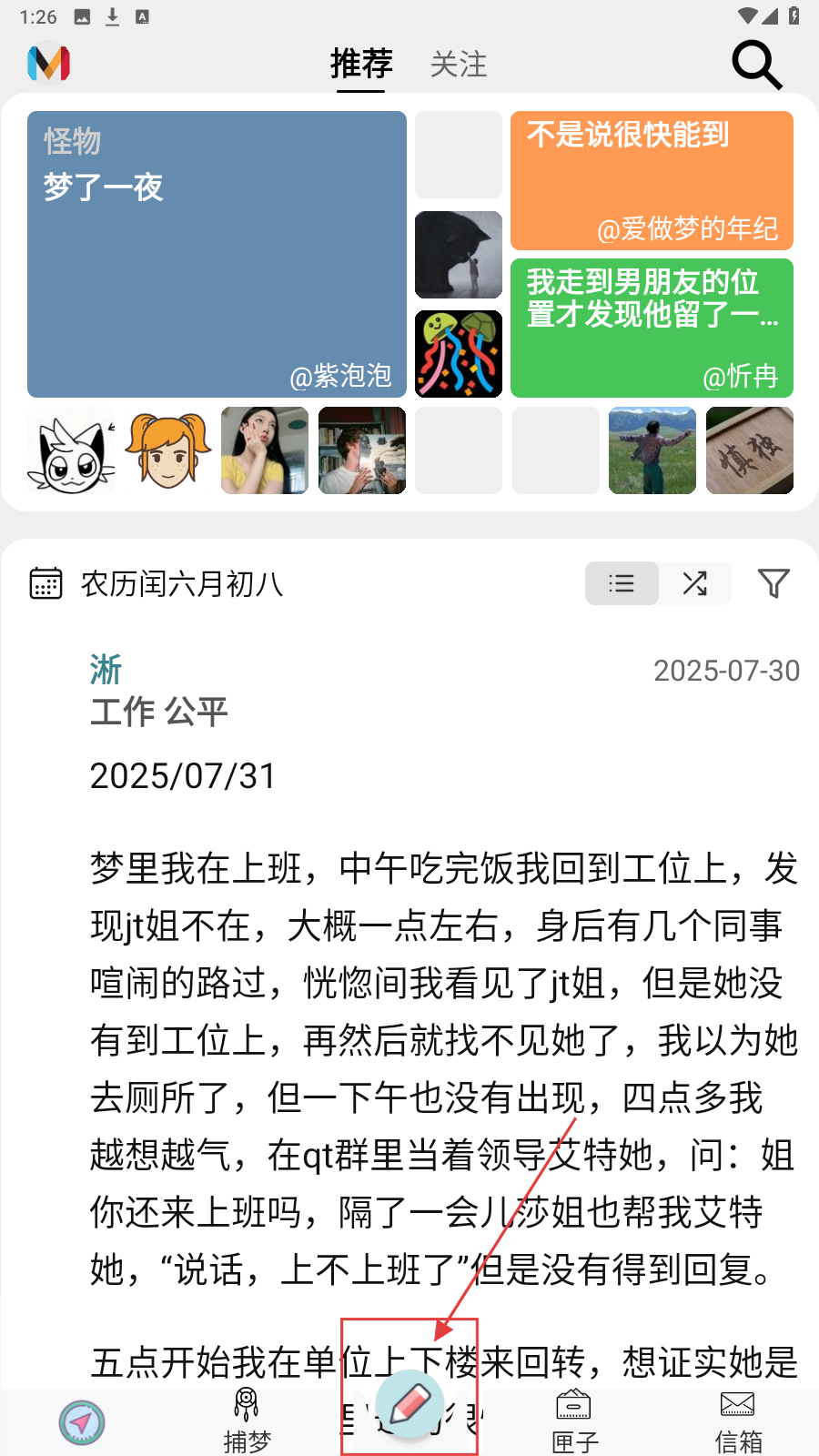 1、在首页点底部铅笔图标,进入记录新梦页面,开始记录梦境。