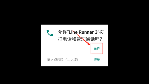 2、出现“允许‘LineRunner3’拨打电话和管理通话吗?”弹窗时,点击“允许”以继续游戏。