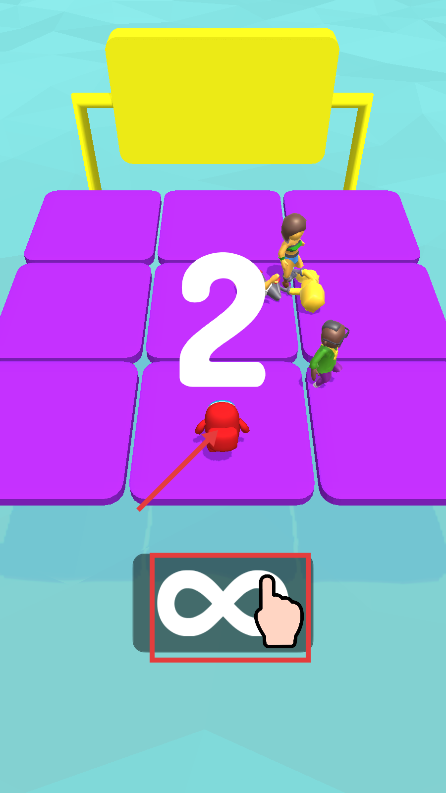 2、倒计时显示【2】时操控红色角色,点击下方无限符号按钮,调整位置为后续匹配做准备。