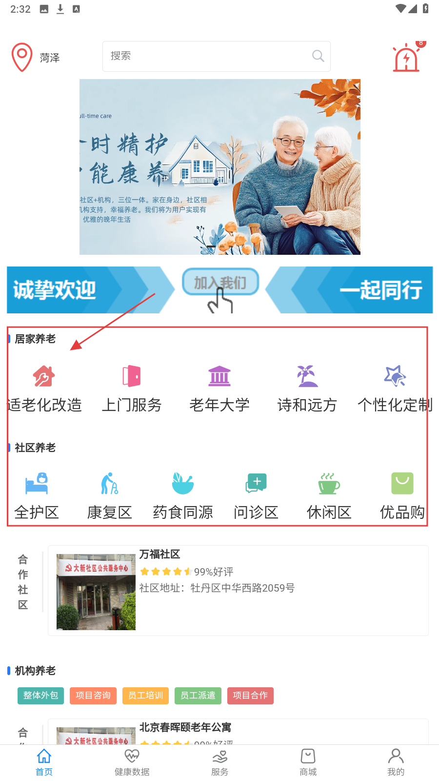 1、在首页【居家养老】栏,点击【适老化改造】,了解改造详情与服务。