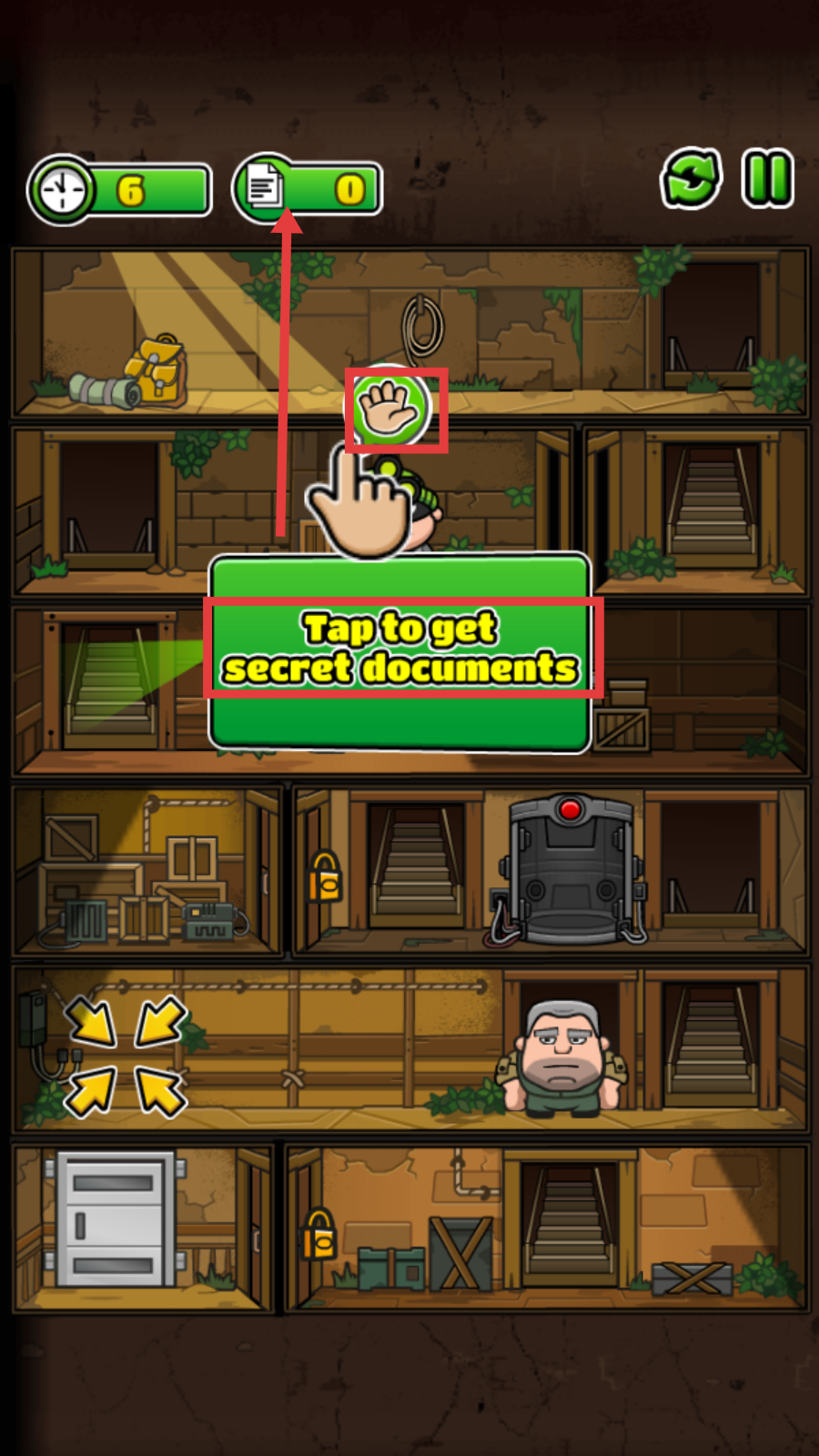 3、点击手掌图标,完成【Tap-to-get-secret-documents】操作,成功获取秘密文件,文档数量从0变为1。