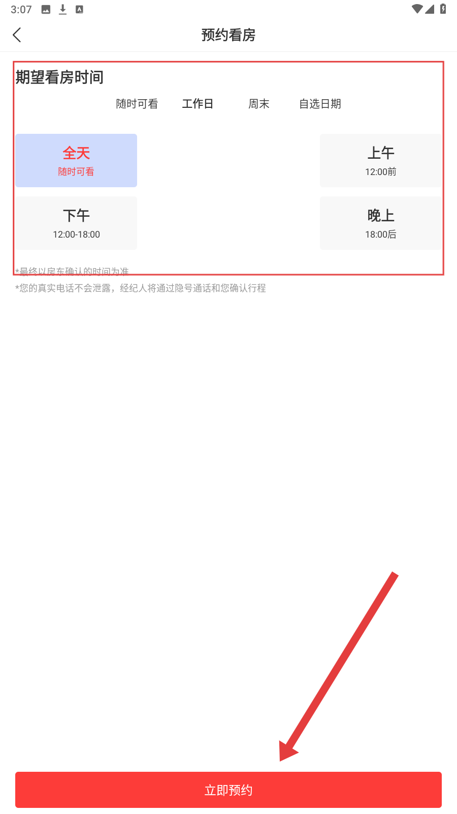 4、确定看房时间后,点击【立即预约】,提交看房申请。
