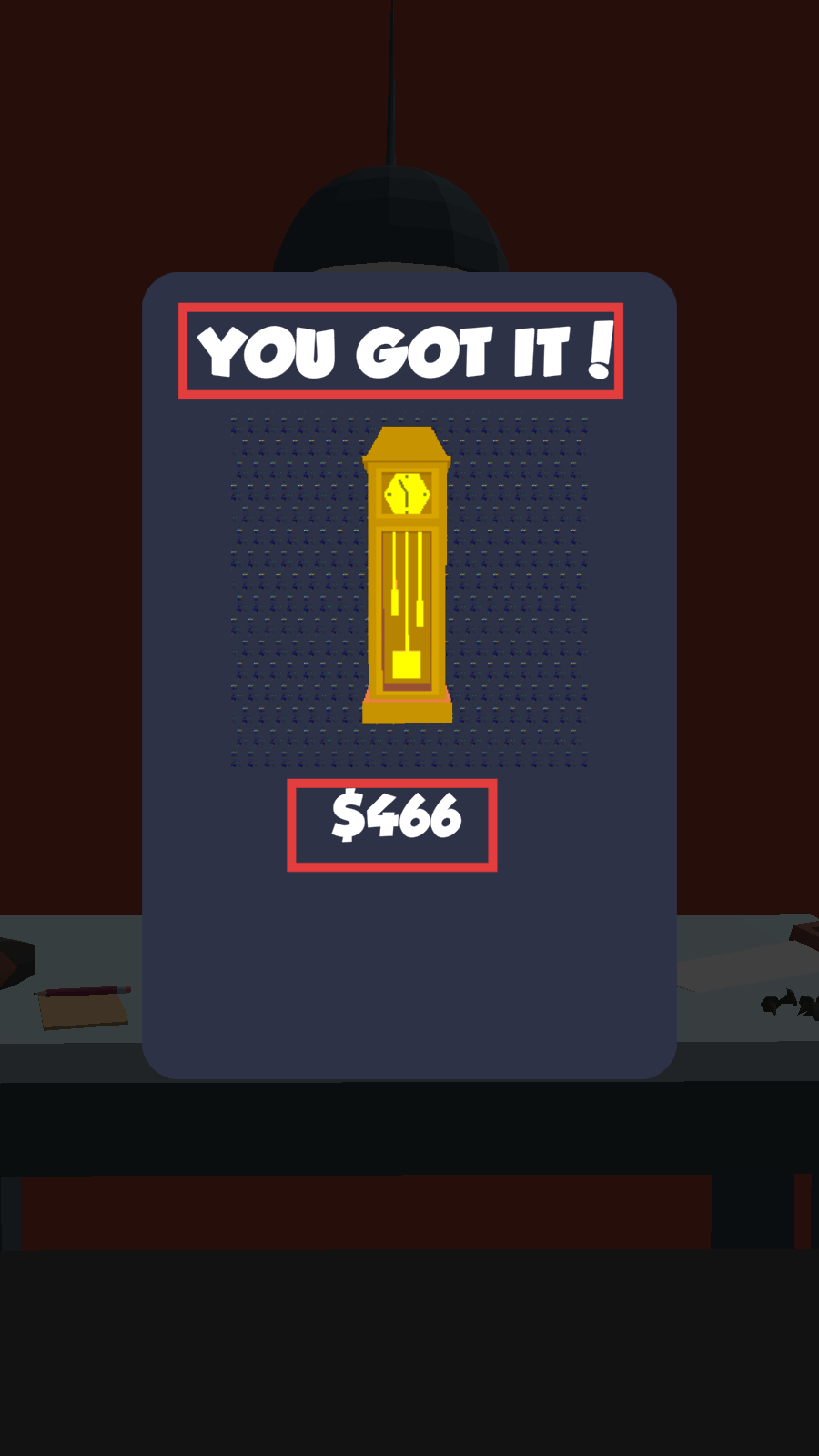 4、完成关卡后显示【YOU-GOT-IT!】,获得金色落地钟,同时得到【$466】奖励以积累财富。