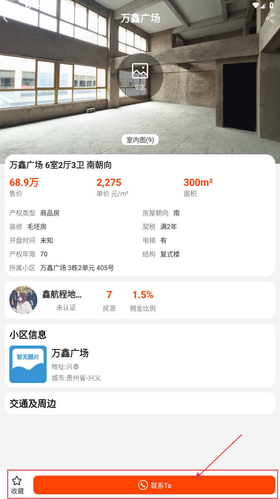 3、进入心仪房源详情,点【联系Ta】,获取经纪人电话。