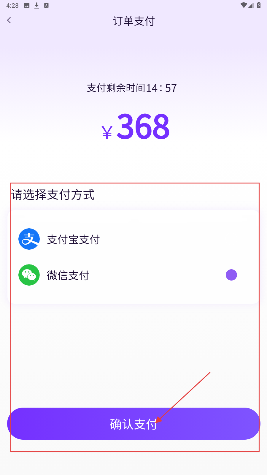 4、选支付方式(支付宝/微信),点【确认支付】完成下单。
