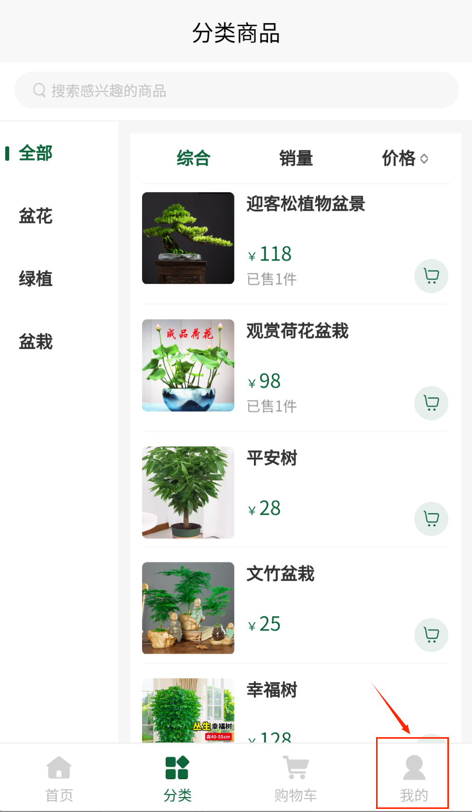 2、商品分为盆栽、绿植、鲜花三大类,每种商品都有高清实拍图和详细养护说明啦。支持按价格、销量、评价等多维度筛选排序呀。