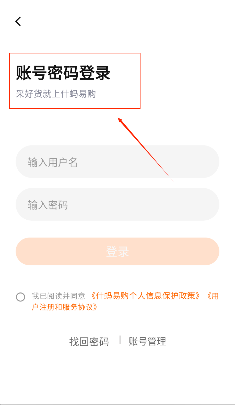 1、账号密码登录要先输入用户名和密码,记得勾选同意政策协议,忘记密码可以点找回密码,登录后就能开始购物啦。