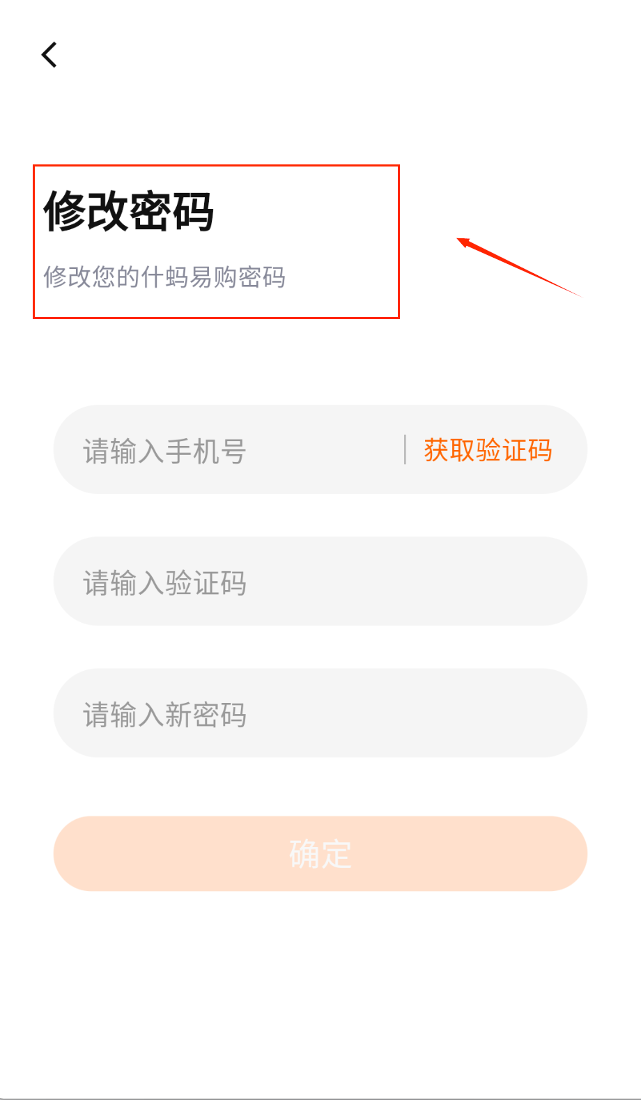3、修改密码需要先输入手机号获取验证码,然后设置新密码并确认,橙色按钮很醒目不会点错的。