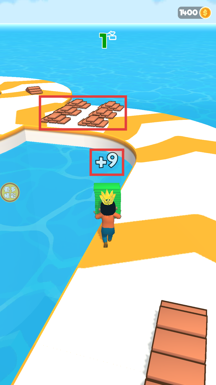 1、点击【开始游戏】进入赛道,留意周围【竞争者】动向,优先收集赛道上的【木材-堆】,抢占前期资源优势。