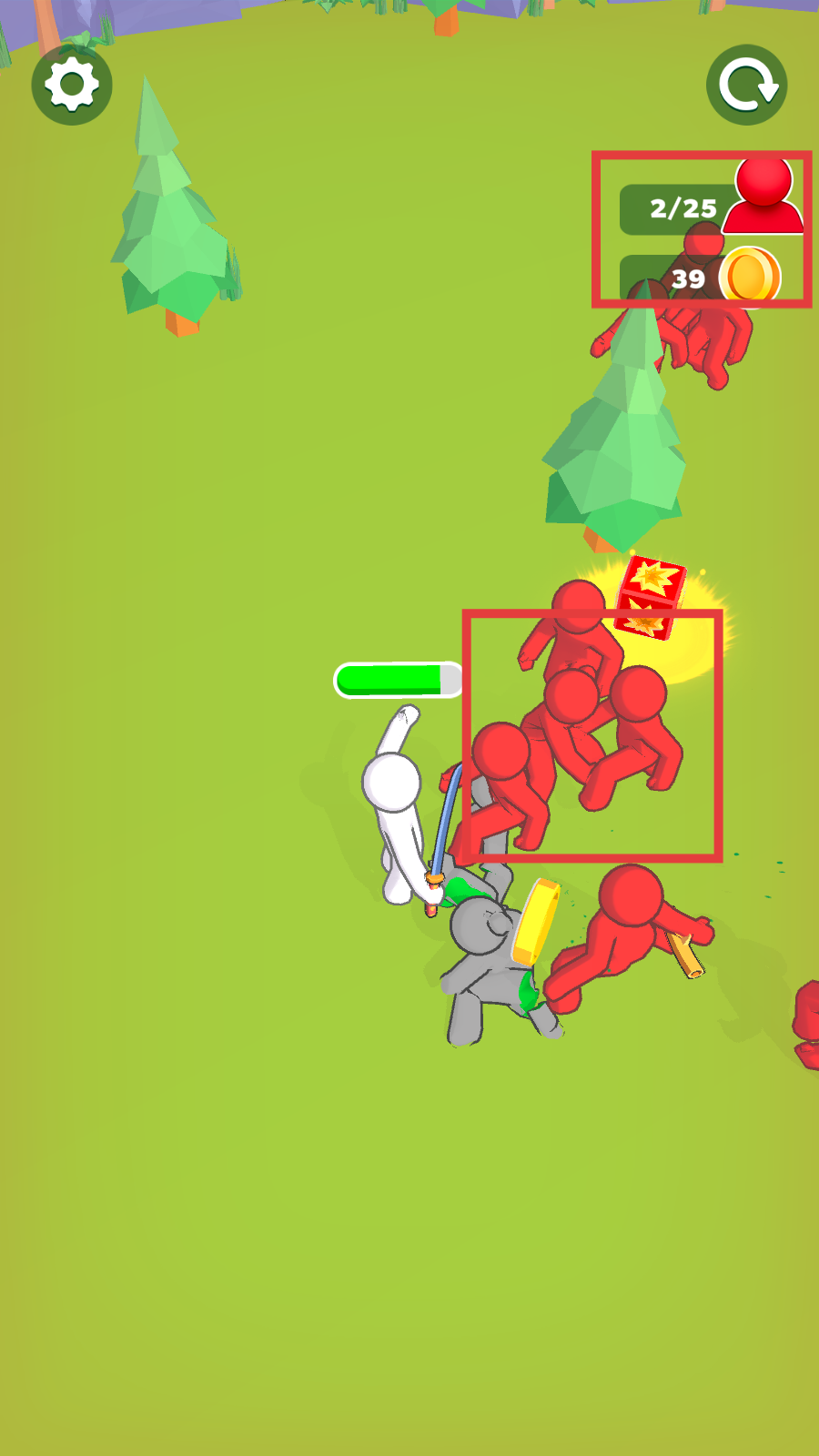 2、战斗时优先击败红色敌人,留意右上角【2/25-敌人】进度与【39-金币】变化,逐步积累资源推进任务。