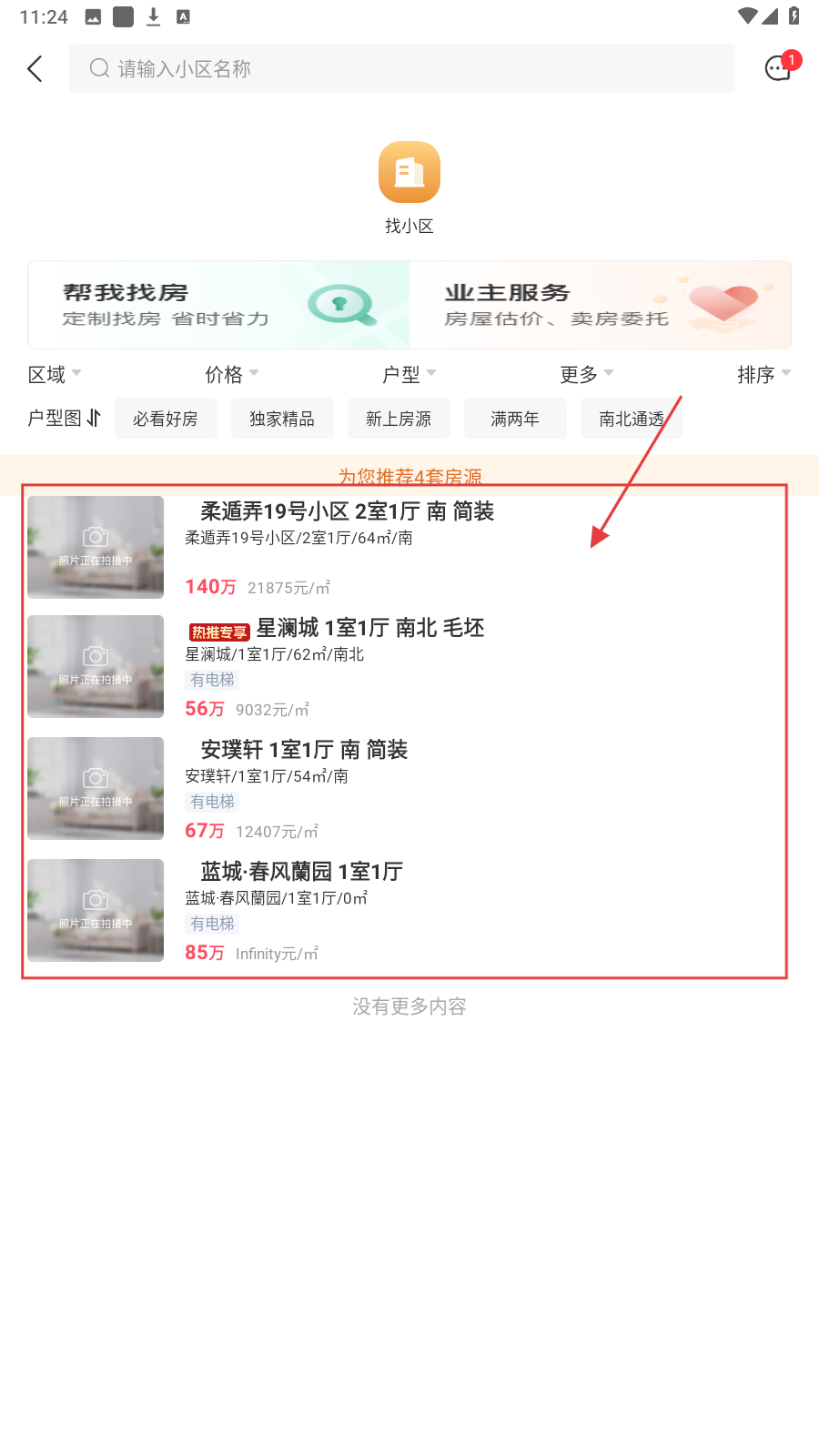 2、在列表选目标房源(如星澜城),查看基础信息。