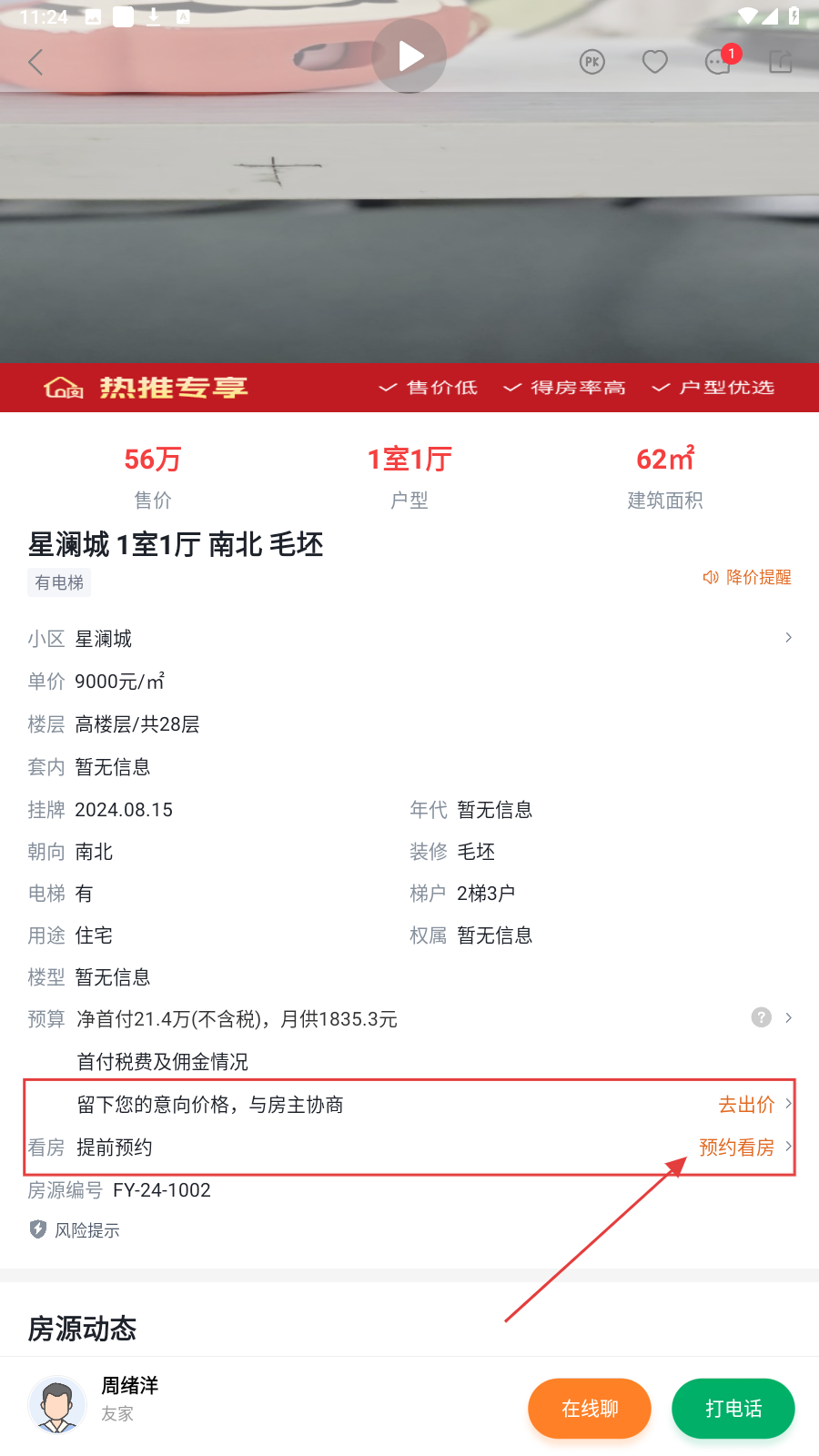 3、进房源详情页,点【预约看房】,选定期望看房时间。