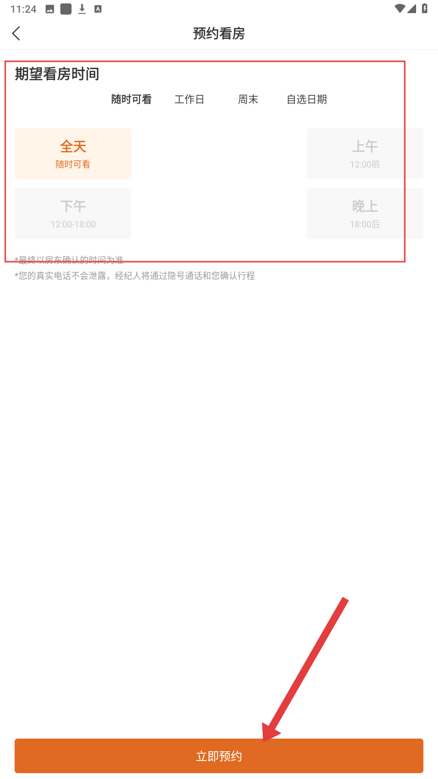 4、确认看房时段后,点【立即预约】完成售房看房预约。