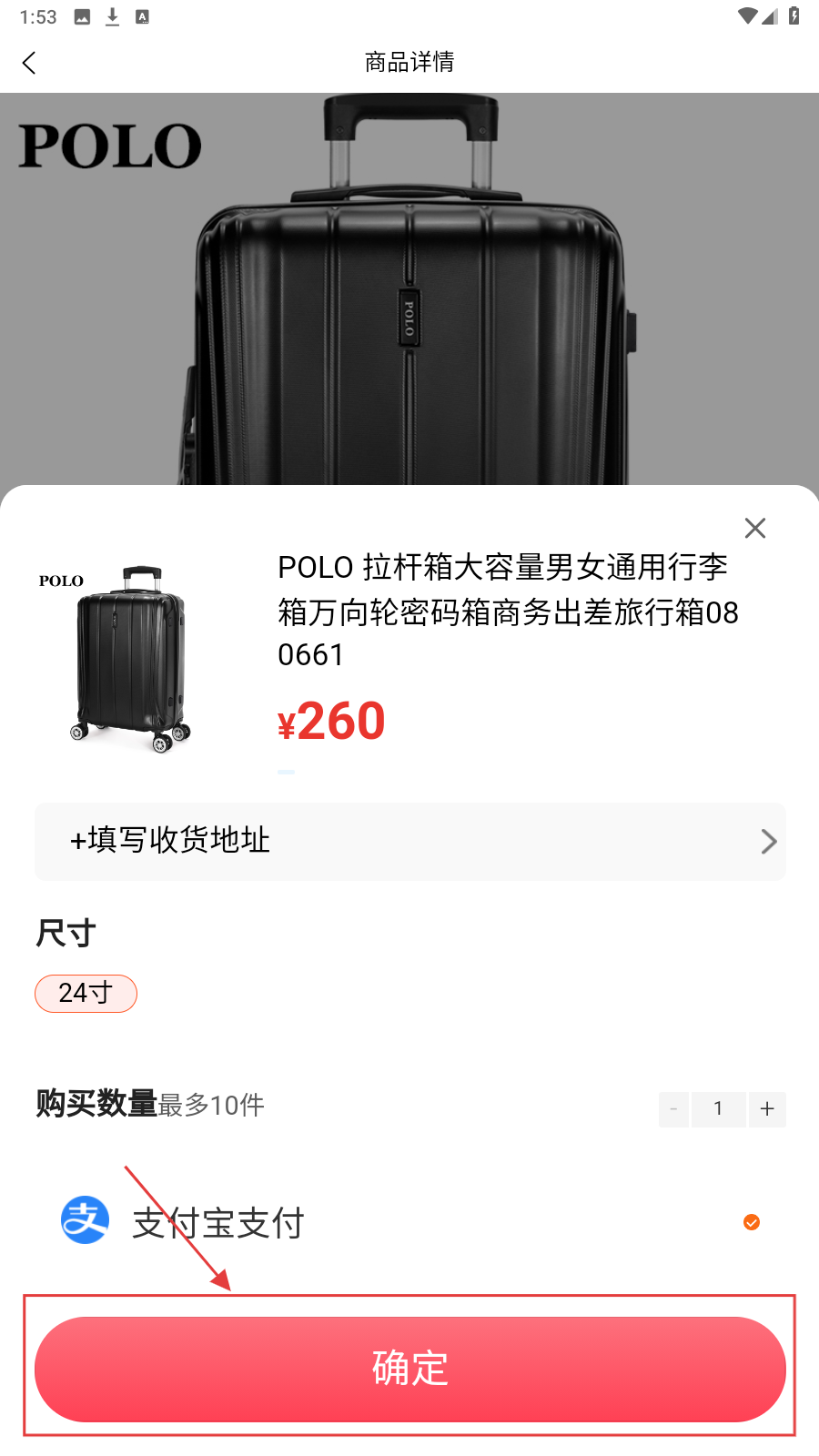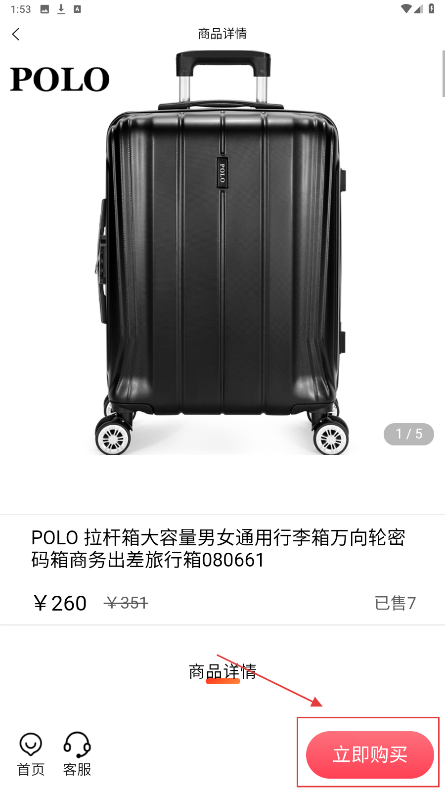 2、在类目商品列表,选POLO拉杆箱进入详情页。