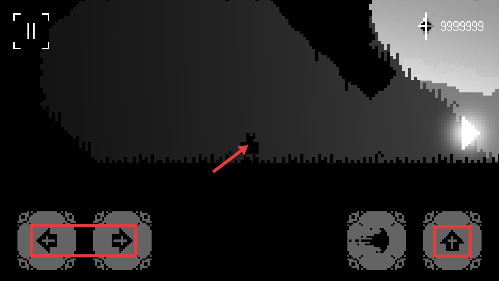 2、操控角色时,用【左右方向键】移动,按【向上键】跳跃,在黑暗场景中探索前进路径。