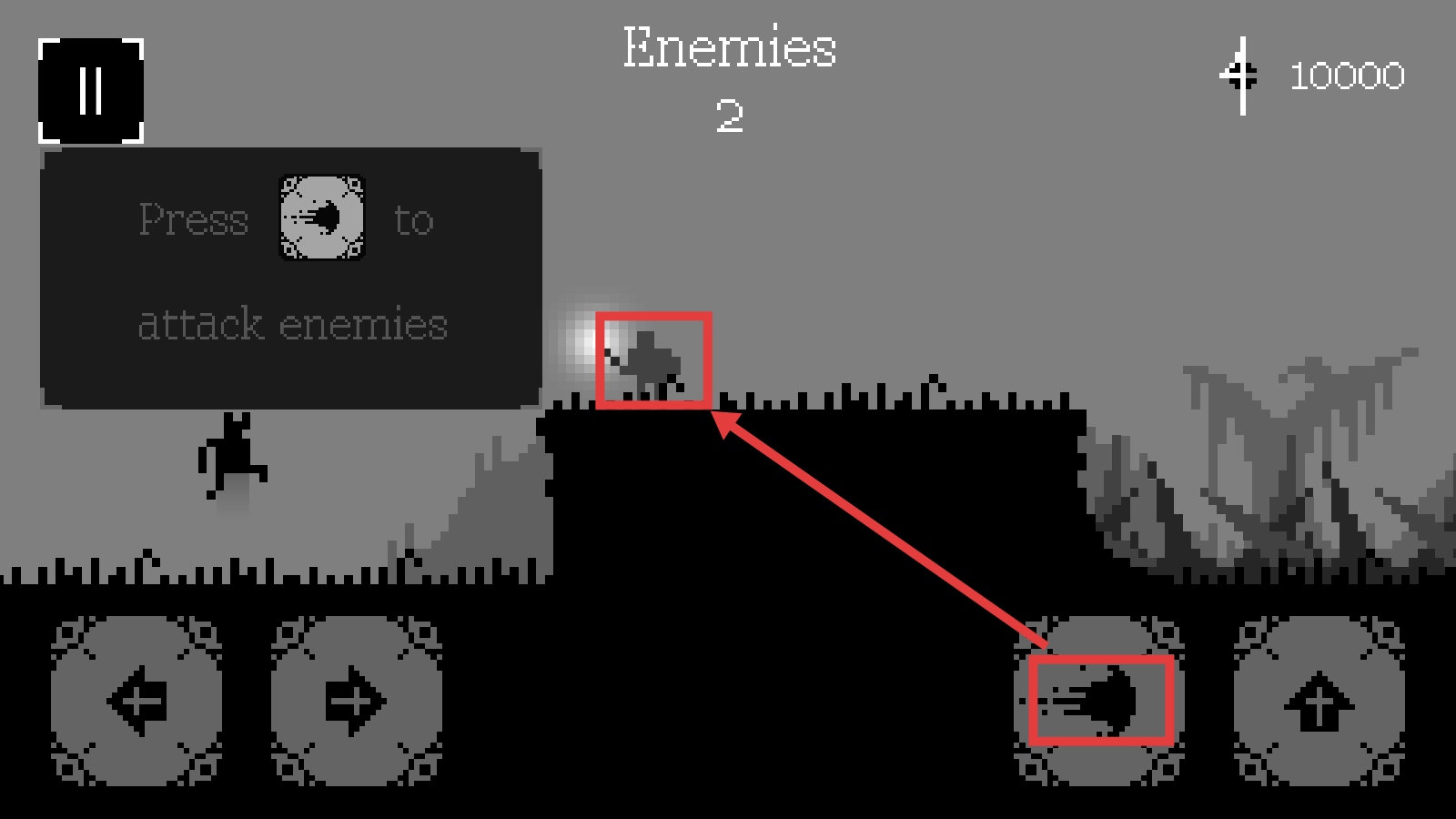 3、遭遇敌人时,按【攻击按钮】发起进攻,应对【Enemies-2】的敌人数量,击败敌人推进关卡。