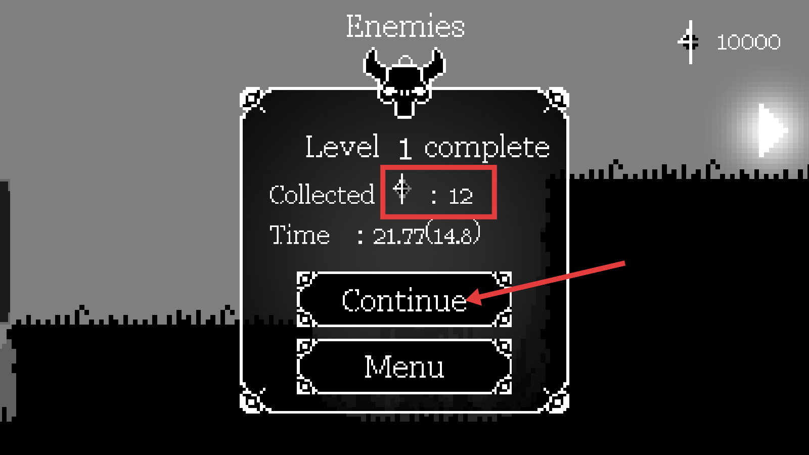 4、完成【Level-1】后,收集到【12】个道具,点击【Continue】按钮,可继续挑战后续关卡。