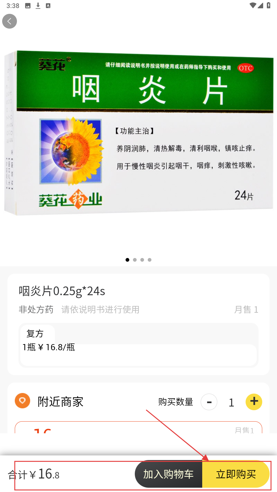 4、确认药品信息后,点【立即购买】或【加入购物车】,完成购药流程。