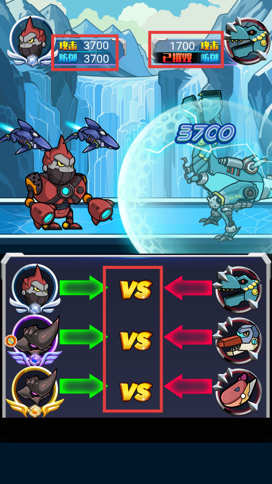 3、战斗时对比双方战力,我方【攻击-3700】【防御-3700】高于敌方【攻击-1700】,合理布阵可高效击败敌人推进战局。