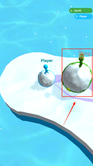 1、控制角色滚球:进入游戏,控制橡皮人角色滚动雪球,在场地中不断积蓄雪量,让雪球随滚动逐渐变大,为攻击对手做准备。