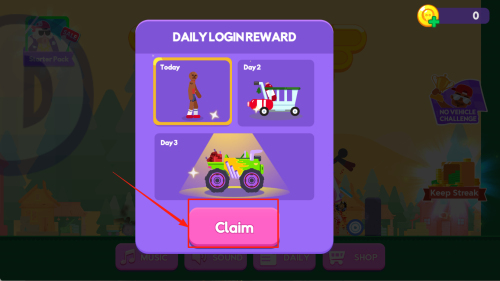 1、领取奖励:在“DAILY LOGIN REWARD”界面点击“Claim”,获得当日登录奖励。