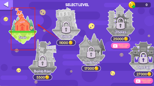 3、选择关卡:在“SELECT LEVEL”界面点击“3holes”,花费25000金币开始第一关挑战。