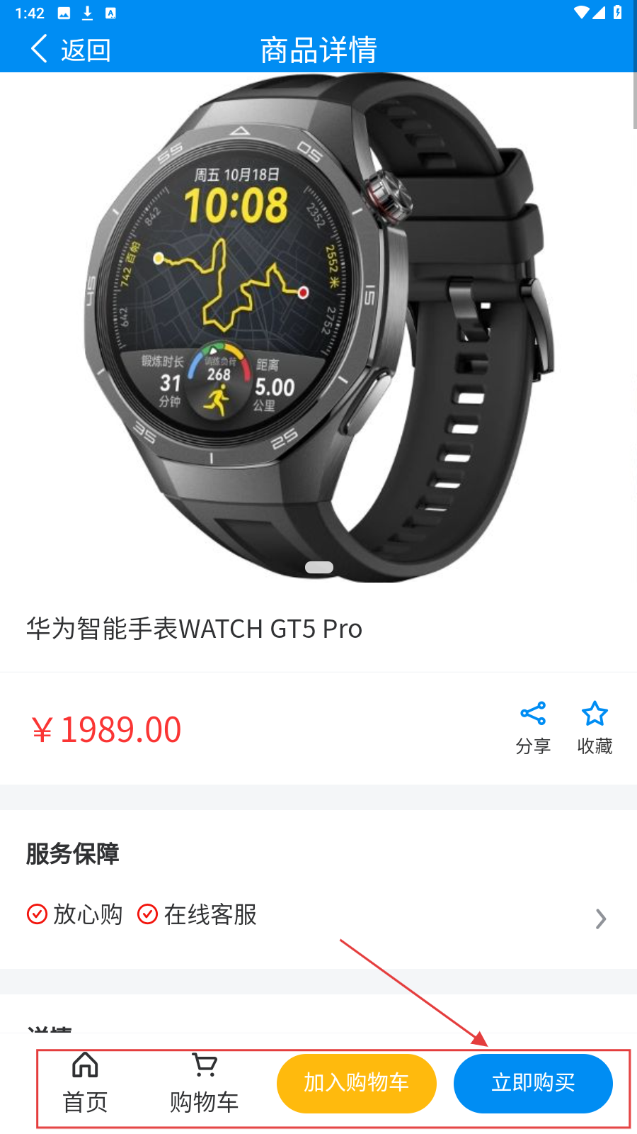 3、商品详情页,确认信息后点【立即购买】,可直接下单。