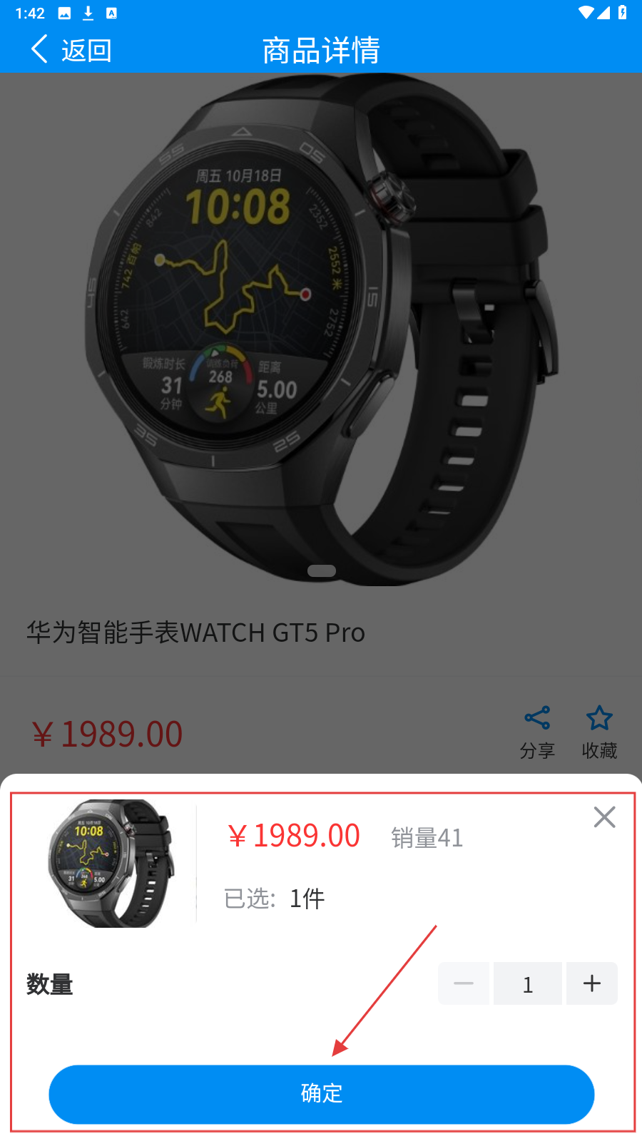 4、选好购买数量,点【确定】,完成商品选购流程。