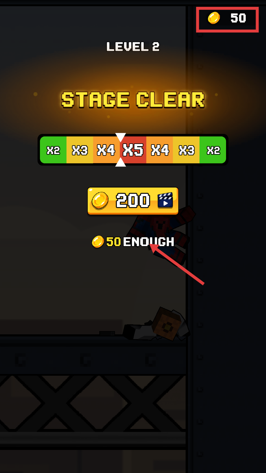 4、通关后获得【200】金币奖励,现有【50】金币可用于商店购物或英雄模式解锁。