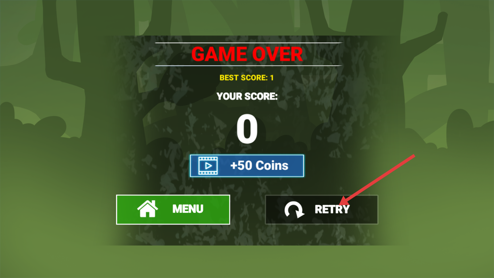 4、游戏结束后点击【RETRY】按钮重新挑战,总结经验优化操作,力争突破最佳成绩。