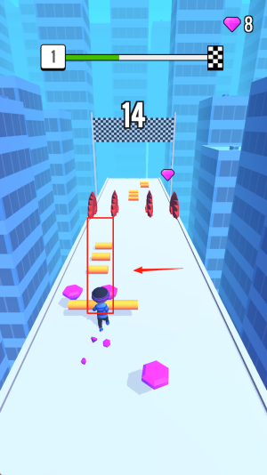 2、升级系统独特:通过金币升级棍子消除障碍,升级机制与跑酷结合,独特设定让成长与闯关紧密关联,玩法更具策略性。