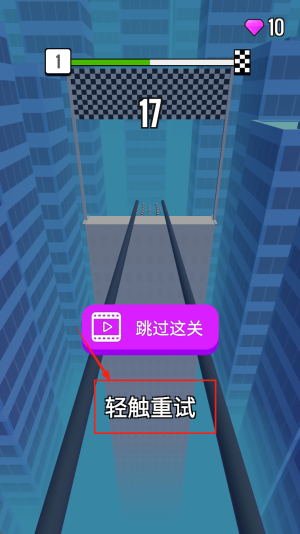 4、选择操作:出现“10 D 跳过这关 轻触重试”时,若想跳过请点击“跳过这关”,想重试请点“轻触重试”。