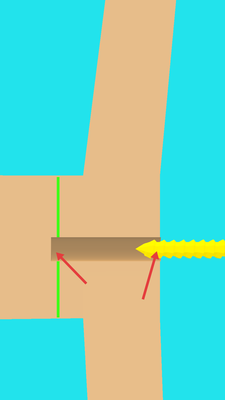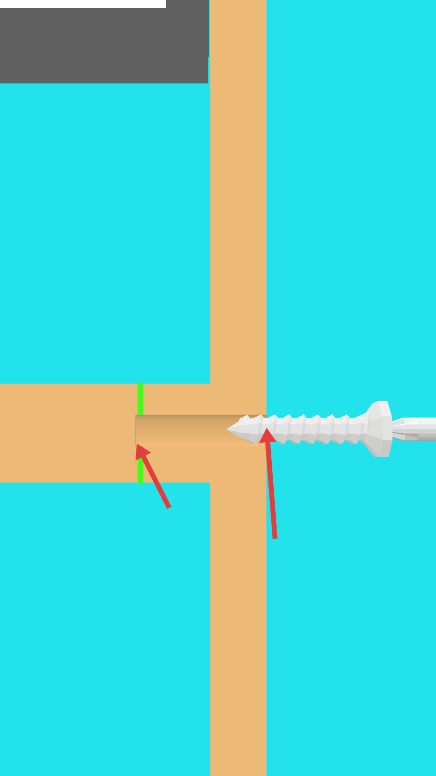 2、操作【白色螺丝】沿箭头方向前进,使其嵌入到【绿色竖线】对应的木板位置,完成固定。