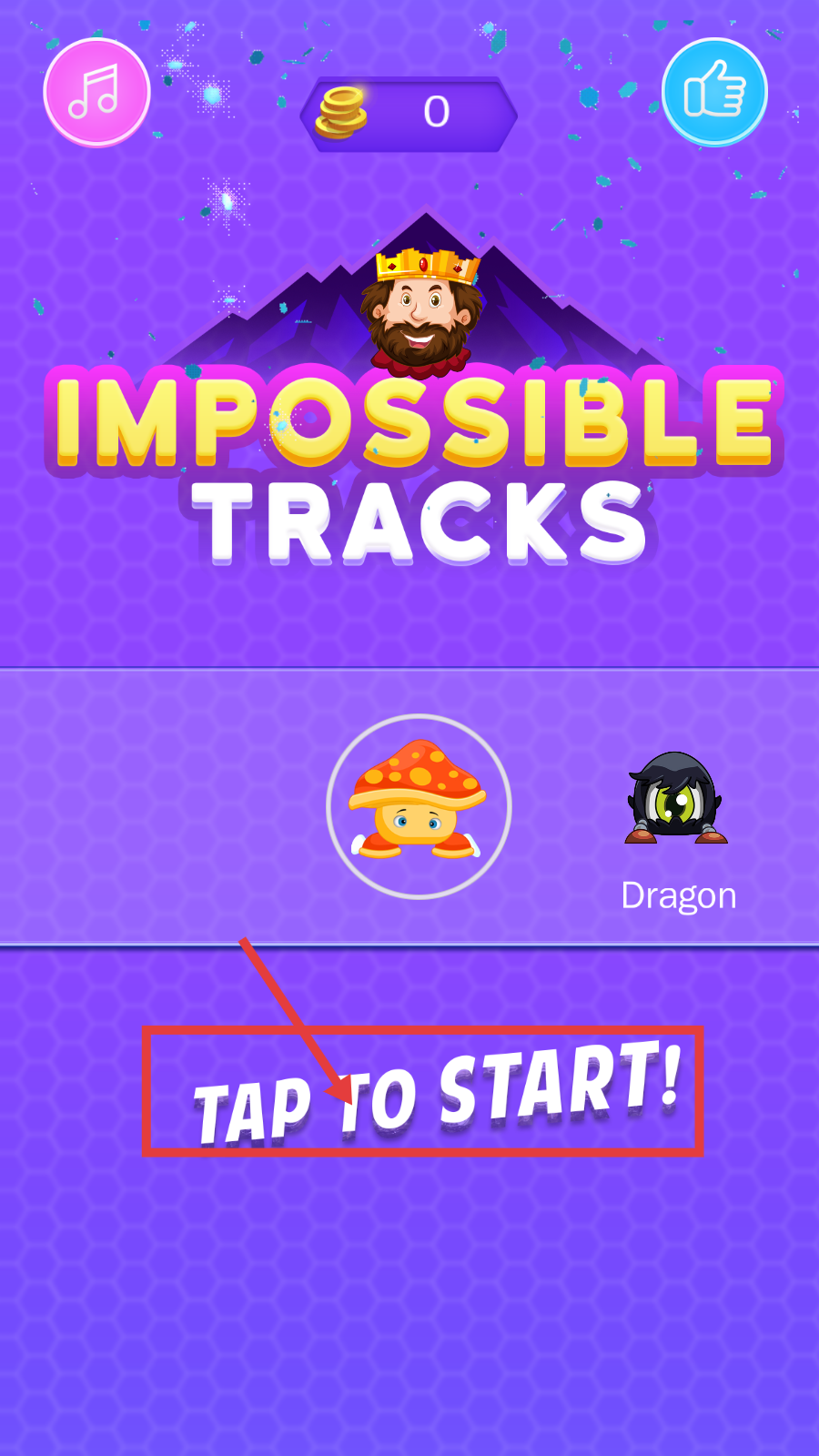 1、点击【TAP-TO-START!】进入《Impossible-Tracks》,初始选择蘑菇角色,准备开启关卡挑战。
