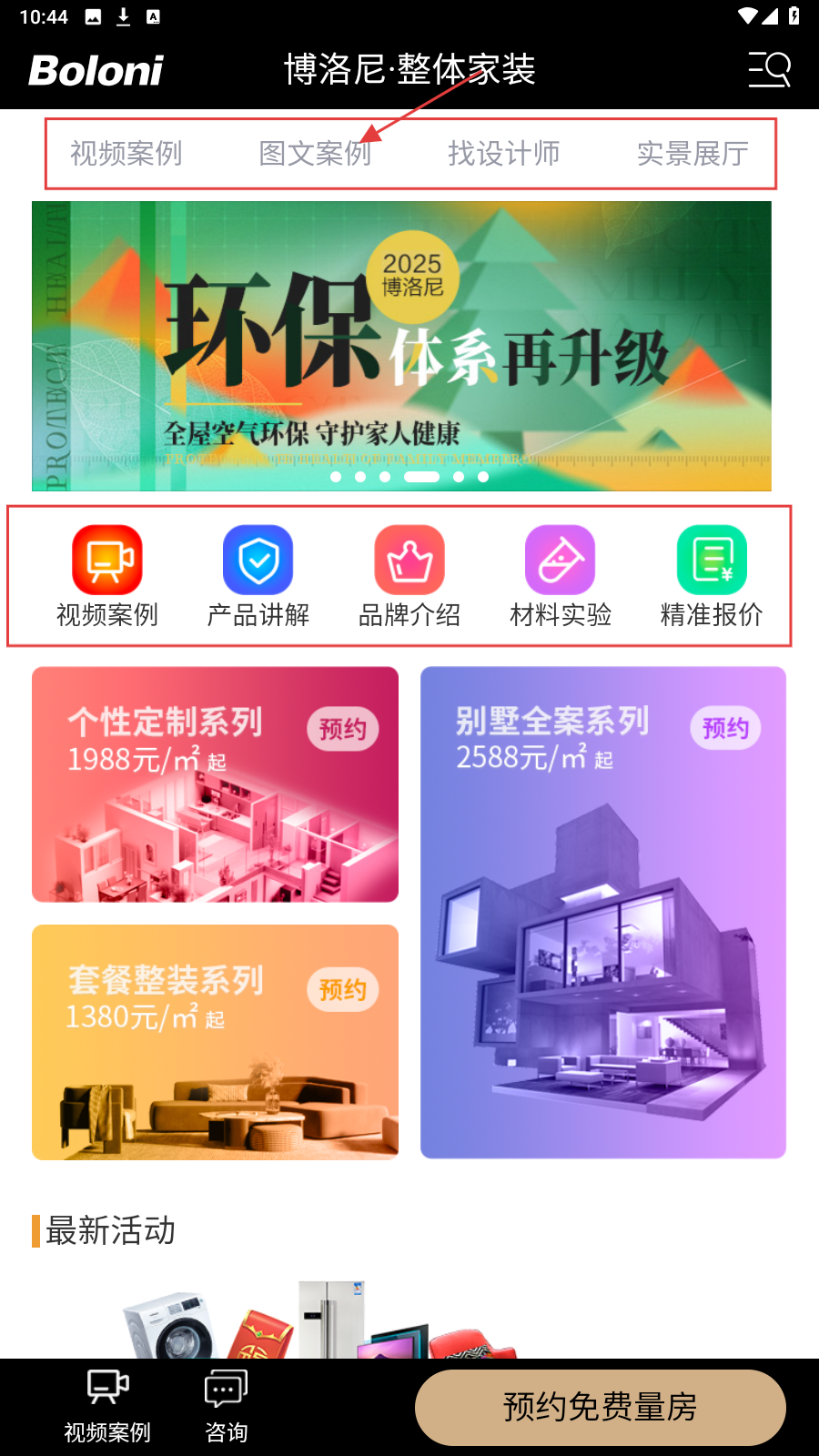 1、打开应用,点击上方【图文案例】,进入案例列表,进行查看不同的装修案例。