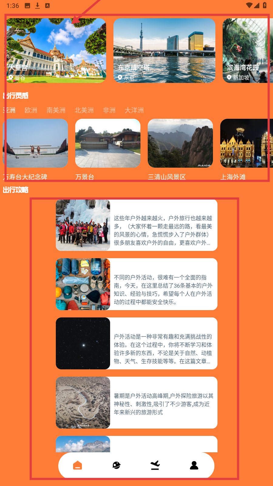 1、智能灵感推送:根据用户浏览偏好和季节特点,智能推送适合的旅行目的地和特色玩法,帮助快速找到心仪的出行灵感。