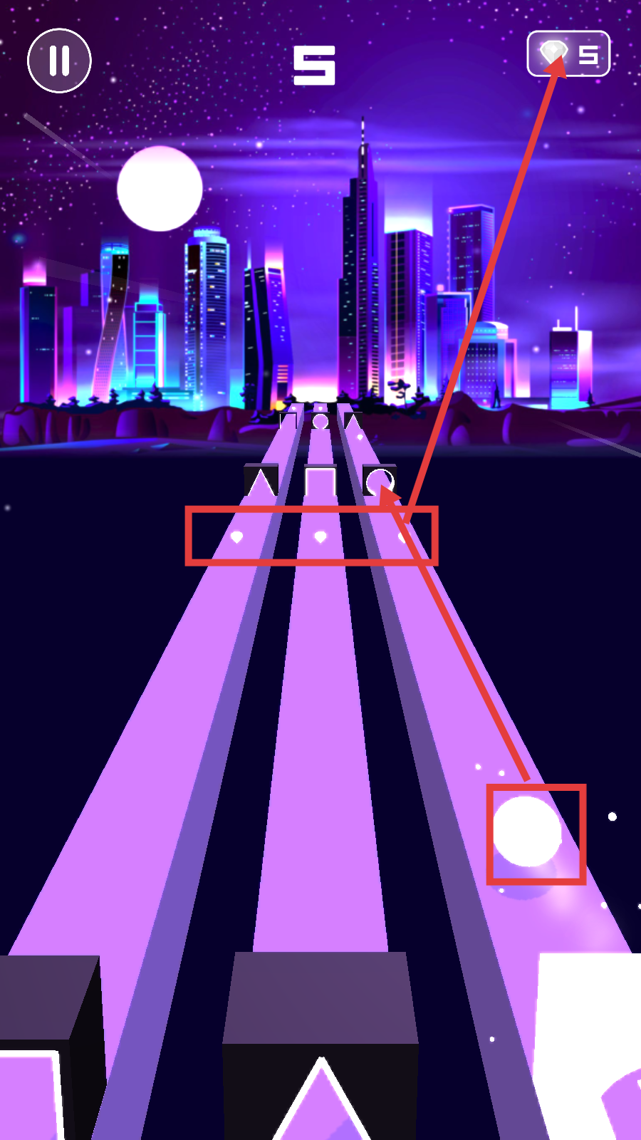 3、沿途收集【钻石】,积累资源的同时提升分数,右上角【钻石-5】显示当前收益情况。