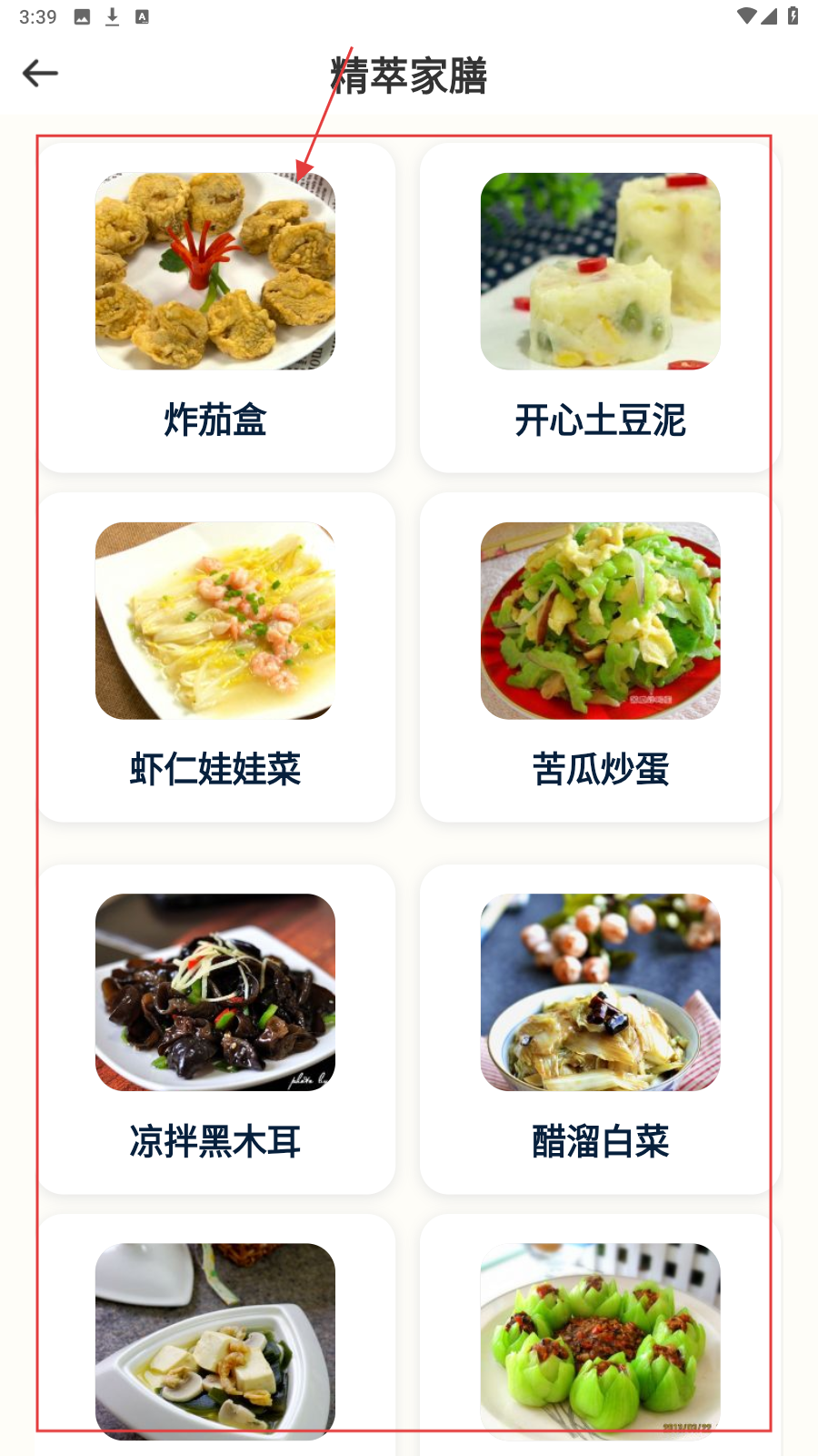 2、在【精萃家膳】分类里,找到心仪菜品如【炸茄盒】,点击进入详情页了解做法。