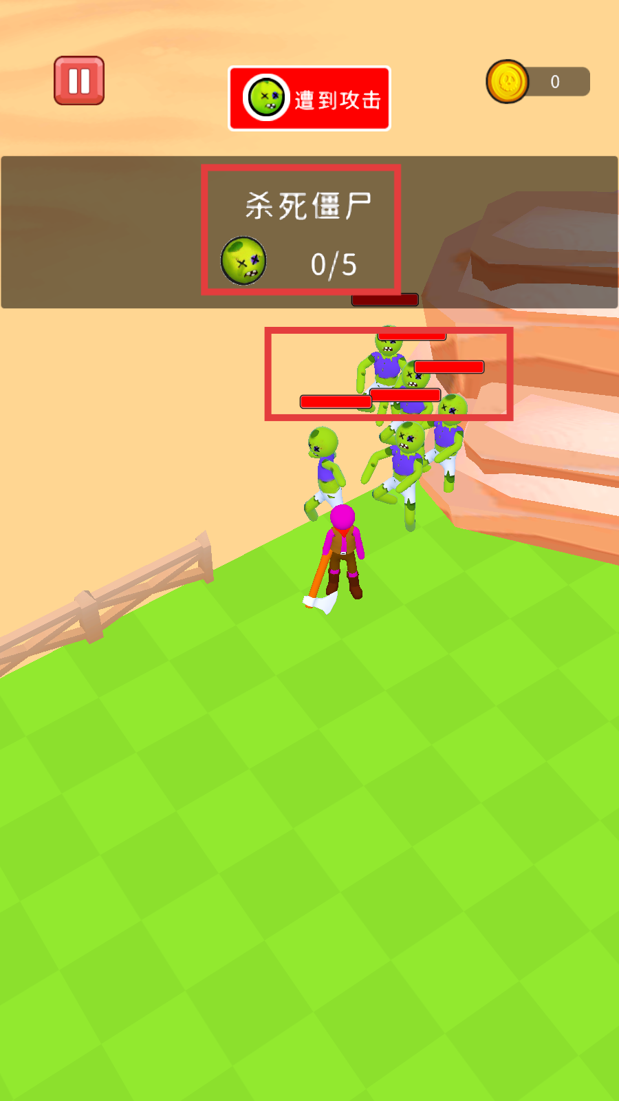 3、建造时若【遭到攻击】,就切换到战斗状态,按照【杀死僵尸-0/5】的任务消灭所有僵尸。