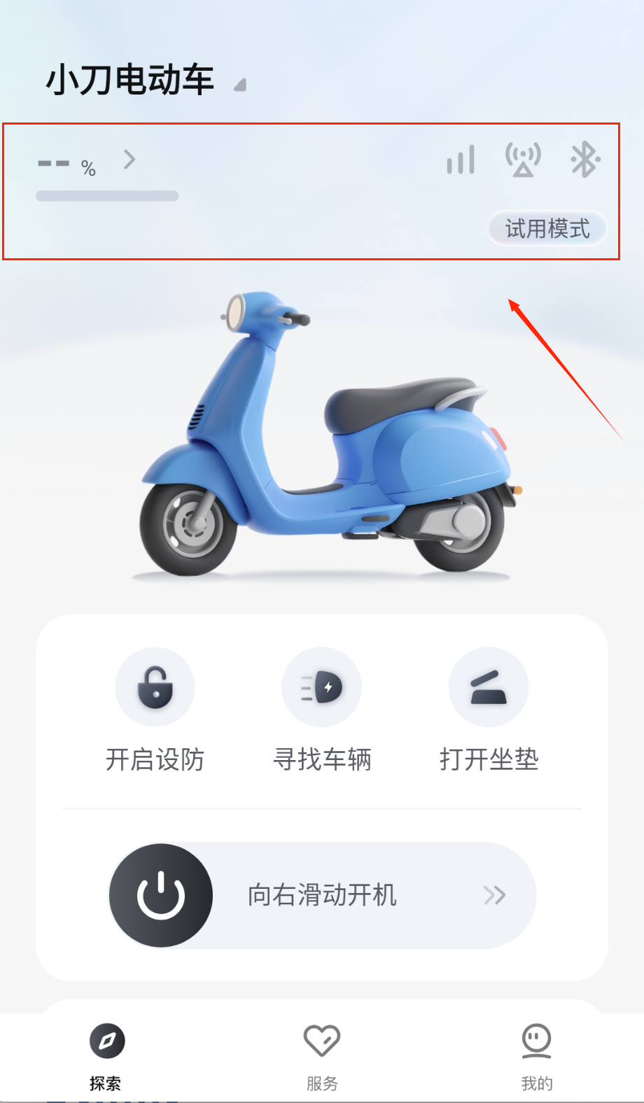 1、 手机开启蓝牙后进入应用,扫描附近小刀电动车完成绑定,首次连接需长按车辆电源键5秒激活配对模式。