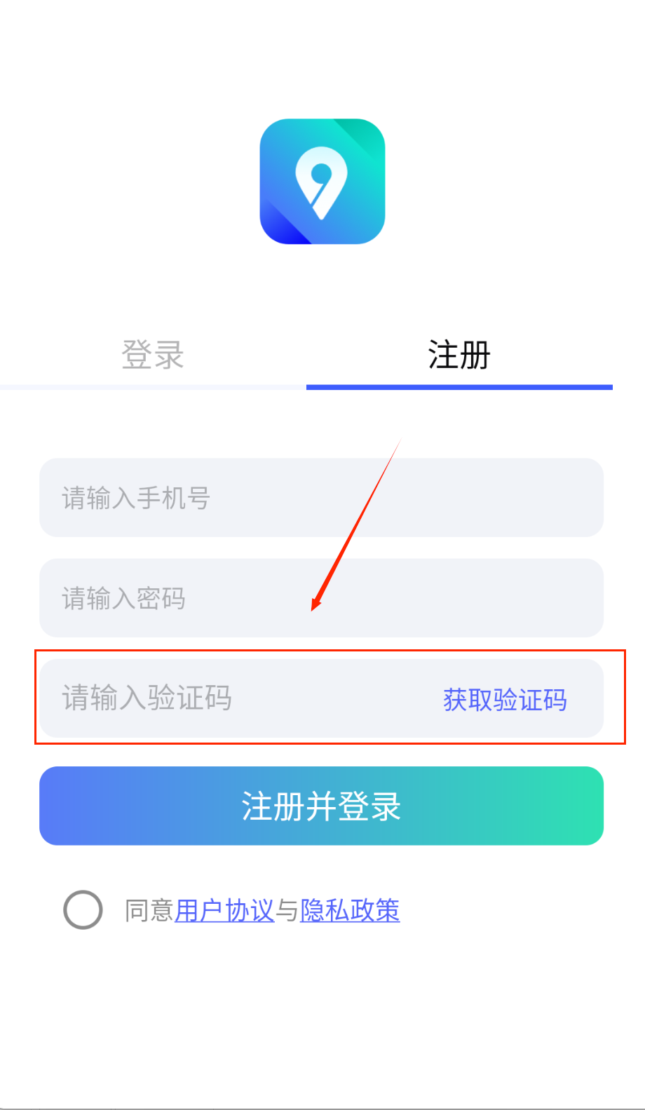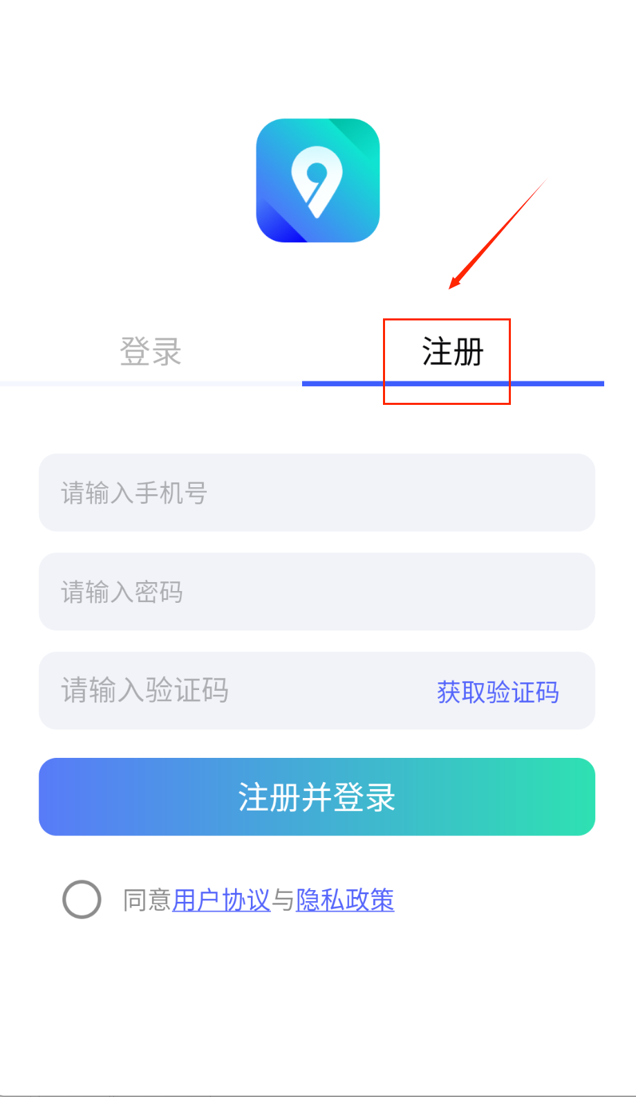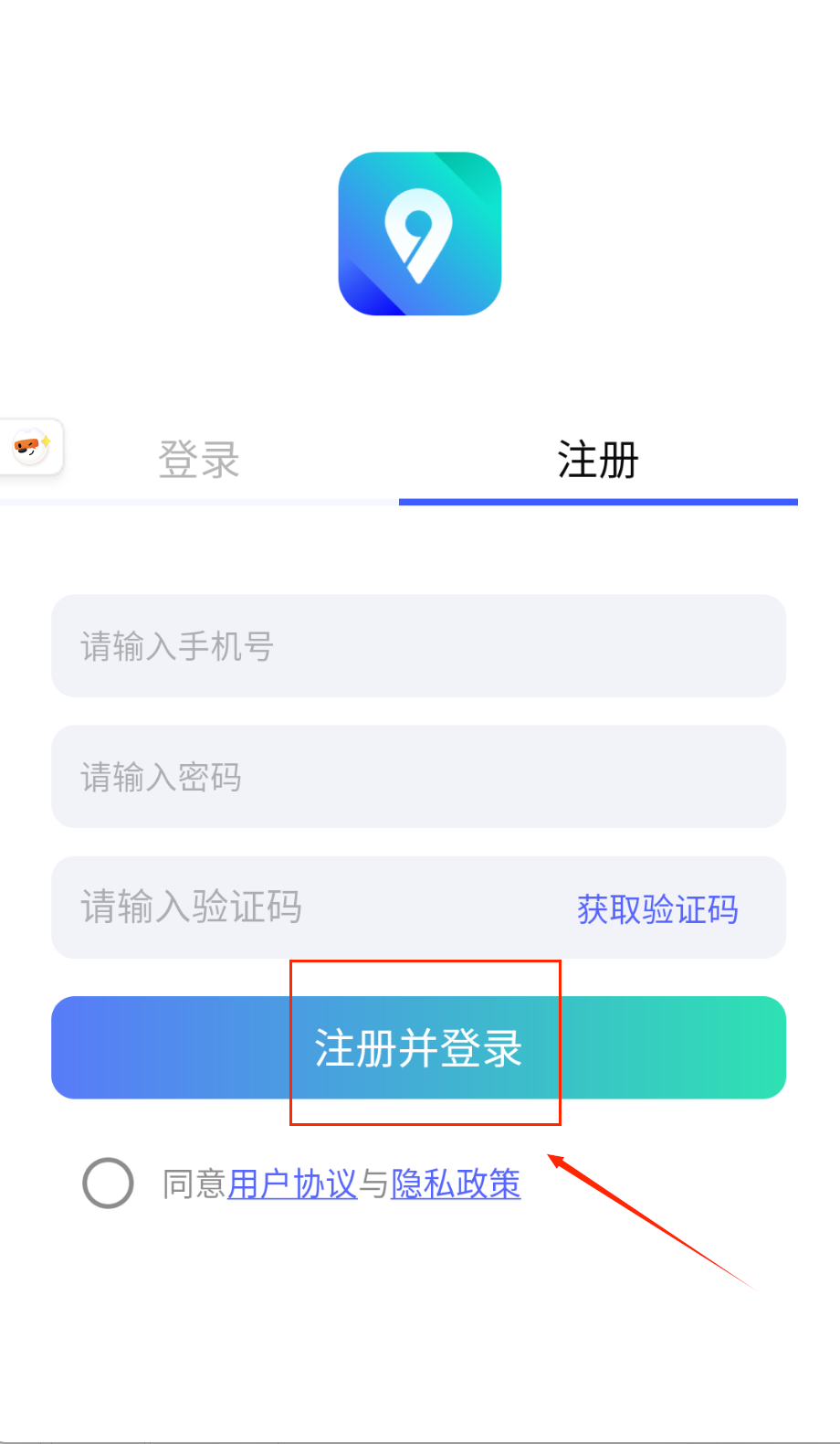 1、 启动应用后首先看到蓝绿渐变登录界面,新用户需点击右下角注册账号按钮进入流程,注意首次使用需允许位置权限授权。