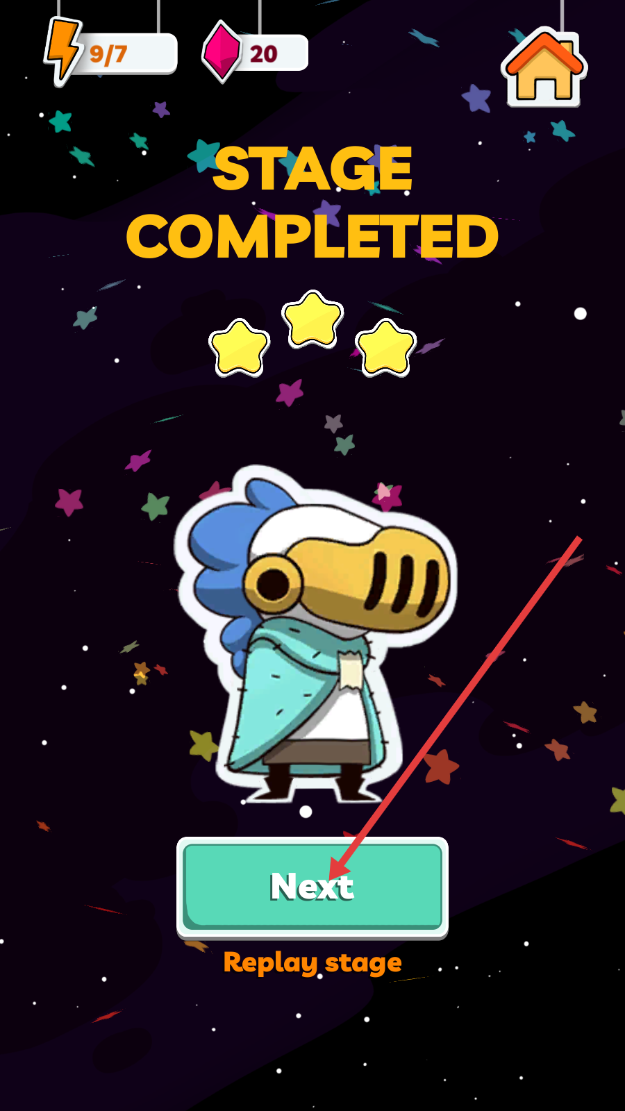 4、通关后界面显示【STAGE-COMPLETED】,点击绿色【Next】按钮,即可进入下一个关卡继续冒险。