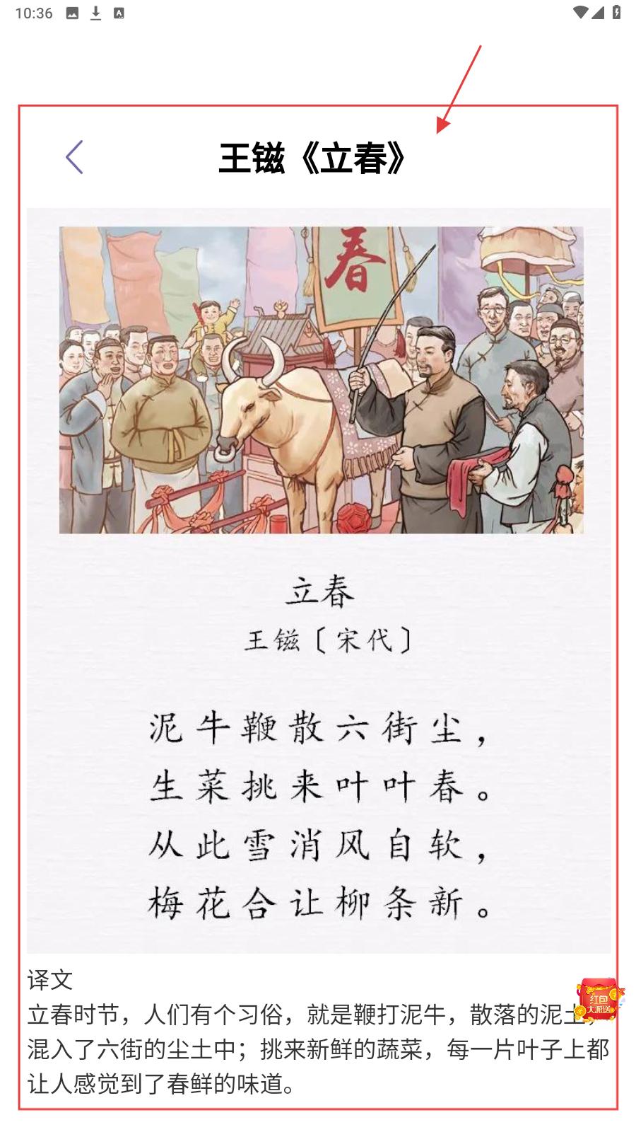 4、进入古诗阅读页,查看古诗,感受古诗与节气的融合之美。