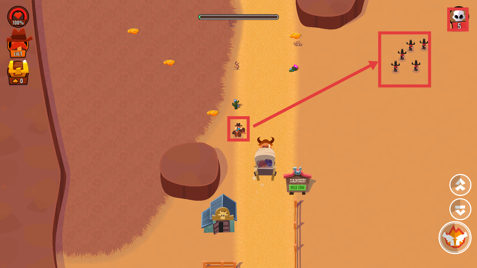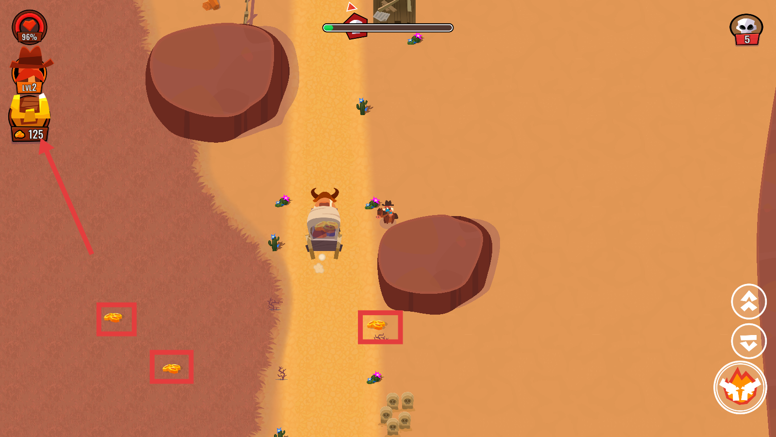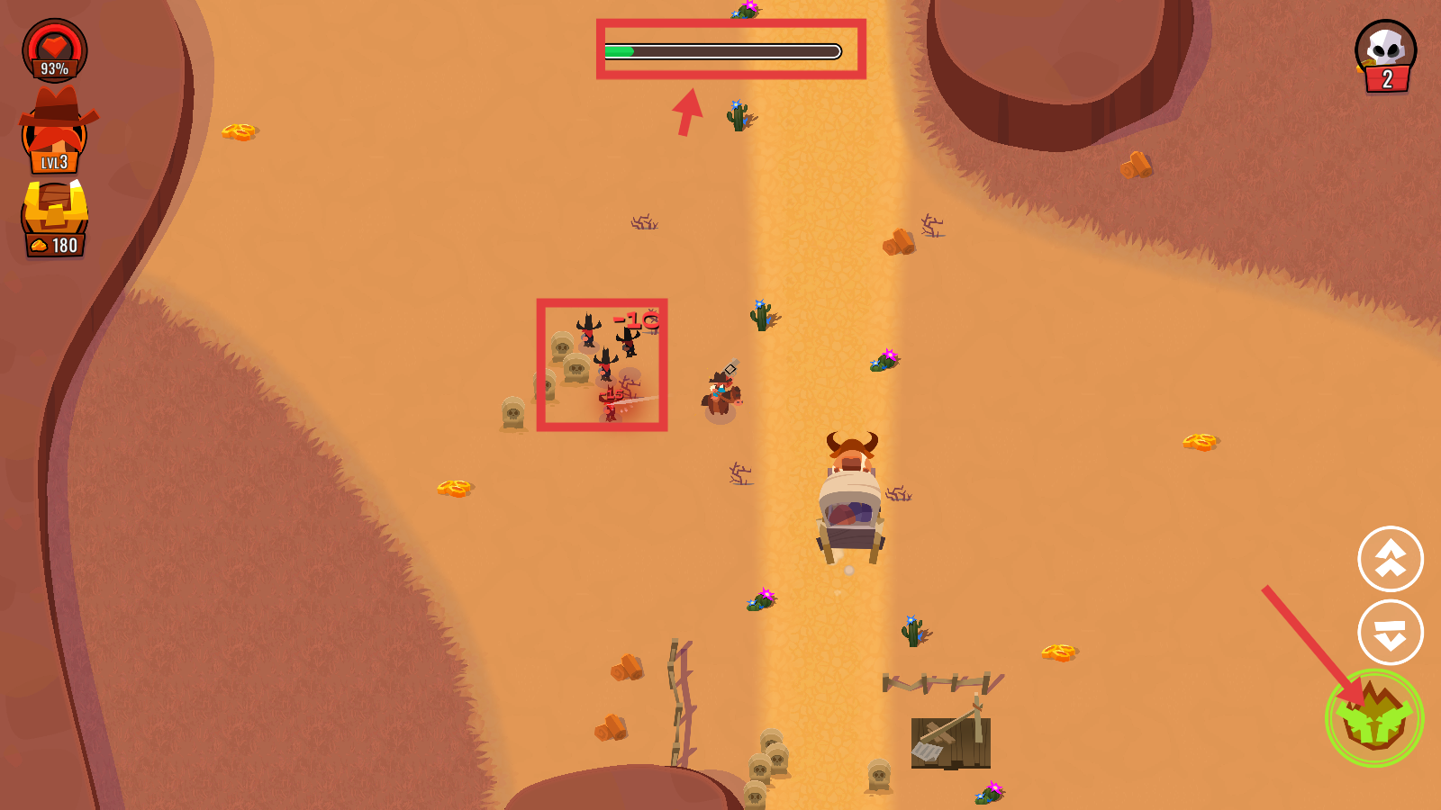 1、核心保护操作:控制牛仔瞄准射击来袭敌人,优先消除近距离威胁保障马车血量维持安全行进状态推进目标。