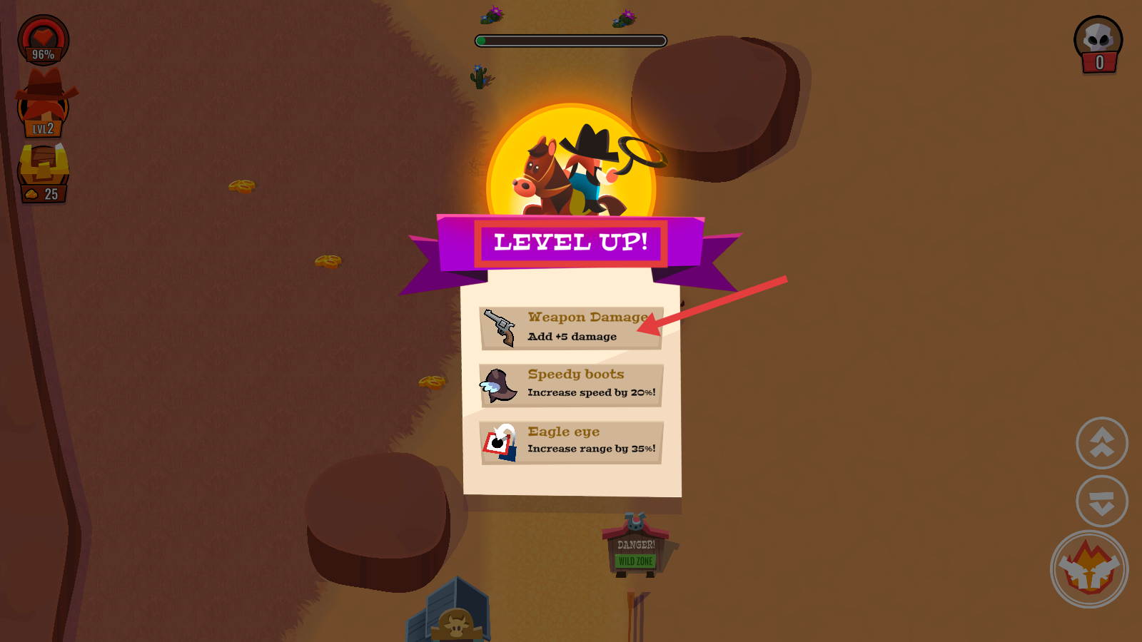 2、升级界面选【Weapon-Damage-Add-+5-damage】,提升武器伤害,增强角色战斗输出能力。