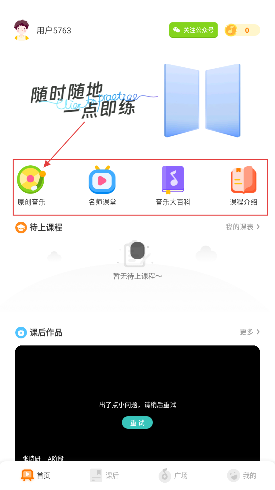 1、进入首页,点【原创音乐】入口,浏览星童声原创曲库。