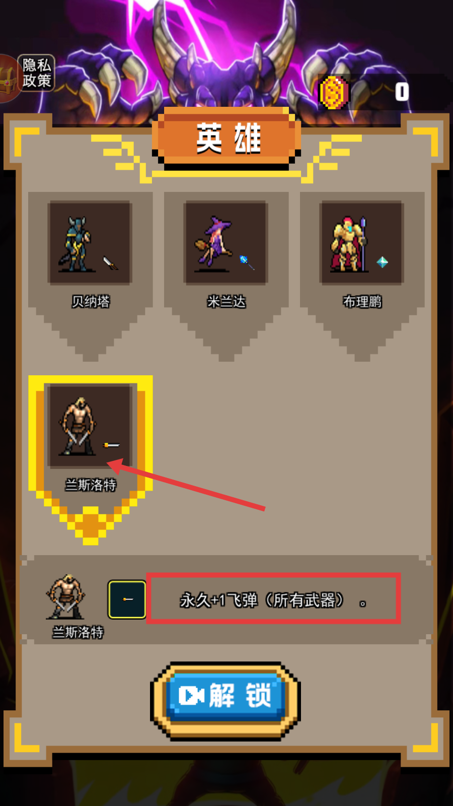 1、优先选择【兰斯洛特】,其【永久+1飞弹(所有武器)】特性,解锁后提升武器飞弹数量增强战力。